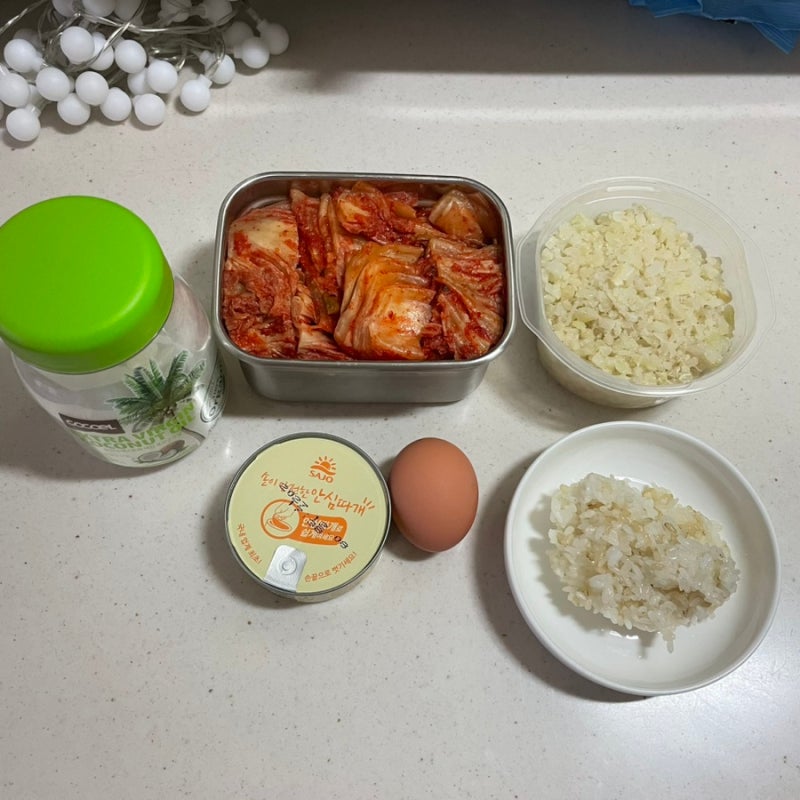 컬리플라워라이스 김치 참치 볶음밥입니다.