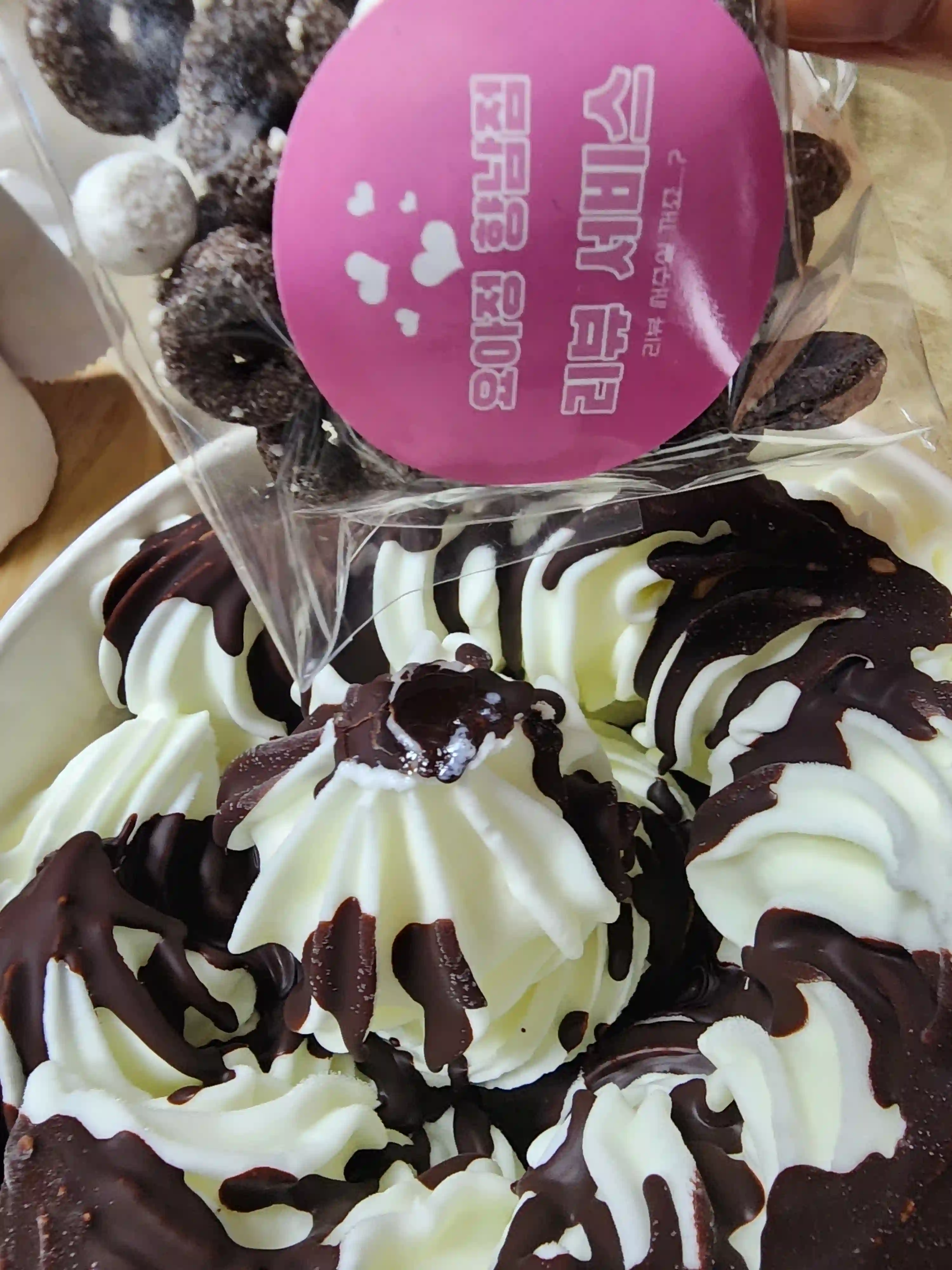 토핑의 종류가 엄청나게 많지만 우리는 초코쉘만 고집해서 먹습니다. 이벤트로 주는 다른 토핑도 먹긴하지만 역시 요아정에는 초코쉘이 진리인거 같애요.