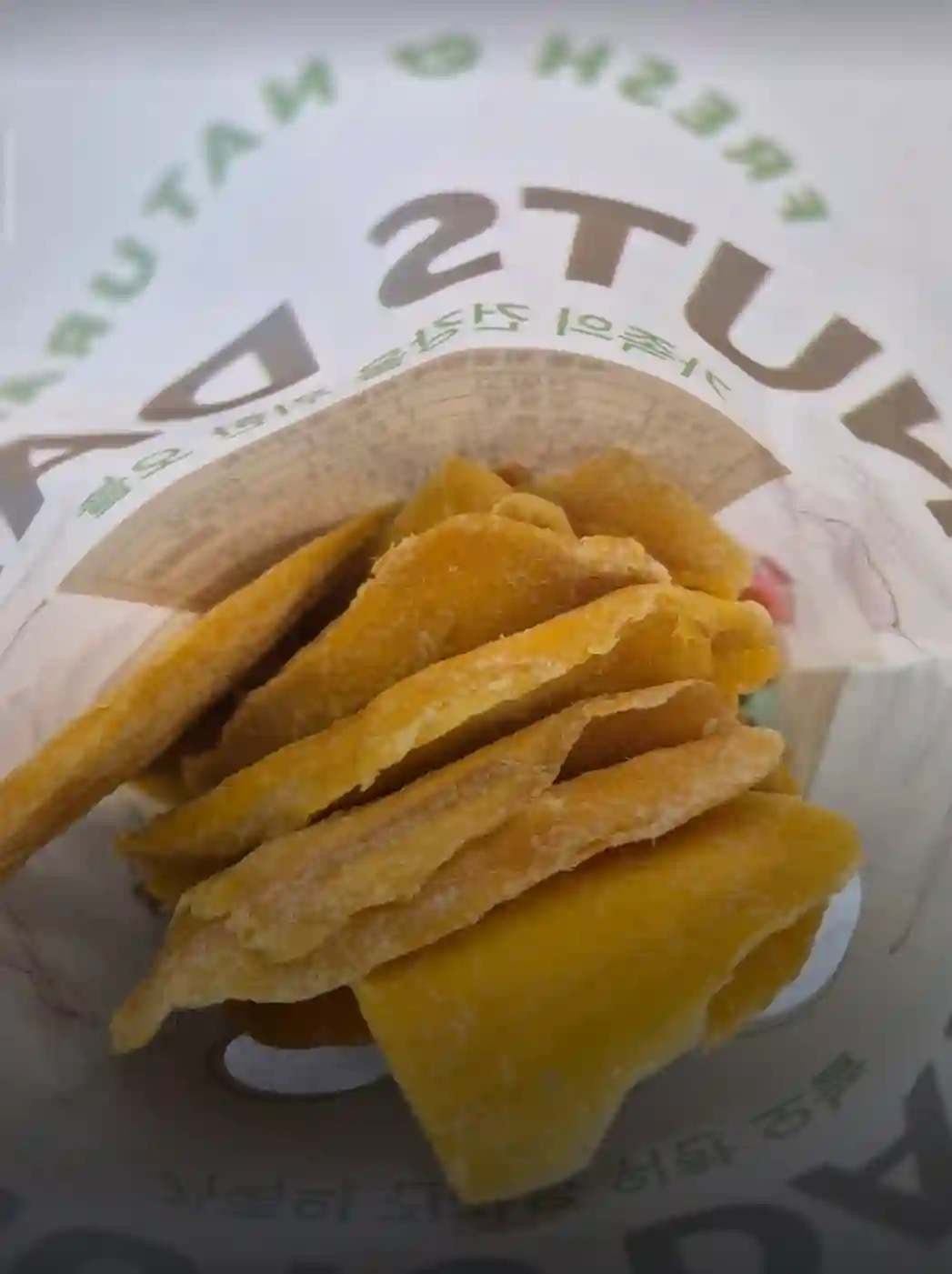 새콤 달콤한 열대과일의 여왕 망고 . 이 맛있는 망고를 쫀득하게 말한게 바로 망고말랭이 입니다. 개인적으로 새콤 달콤한 과일을 좋아해서 한 봉지 열면 그자리에서 순삭 할수 도 있지만 미래의 나를 위해서 적당량을 덜어서 먹습니다. 피로 회복에도 피부에도 좋은 망고 항상 쟁여두게 먹고 싶습니다