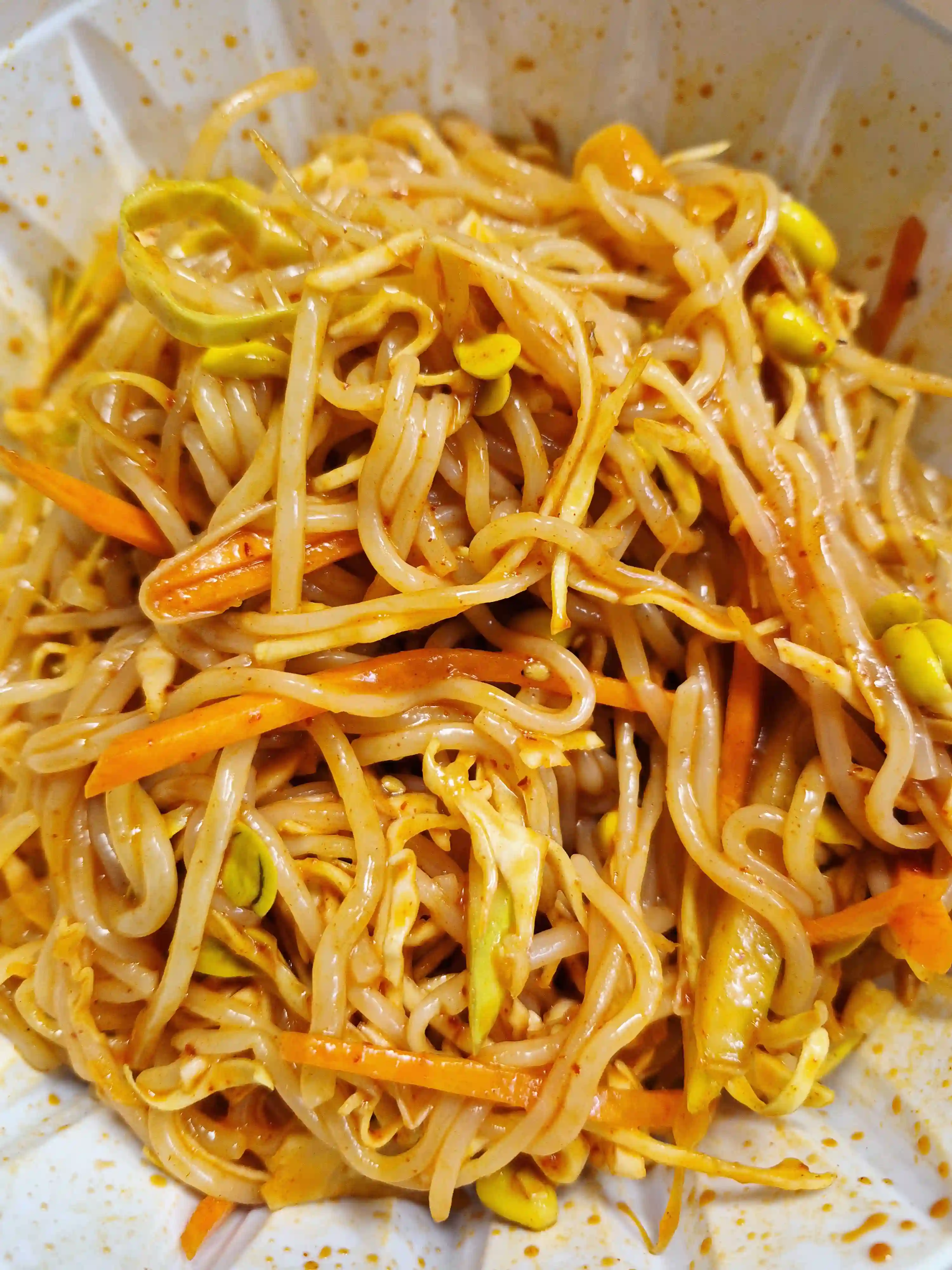 쫄면은 한 젓가락 비비자마자 새콤매콤한 양념 향이 확 올라와서 입맛을 제대로 살려줬어요. 면은 이름 그대로 쫄깃해서 씹는 재미가 있고, 채소랑 함께 먹으니 상큼함도 더해졌어요. 다만 양념에 고추장과 설탕이 들어가 당분과 나트륨은 있는 편이었어요. 채소를 넉넉히 넣고 양념을 조금 줄이면 더 가볍고 건강하게 즐길 수 있을 것 같았어요.