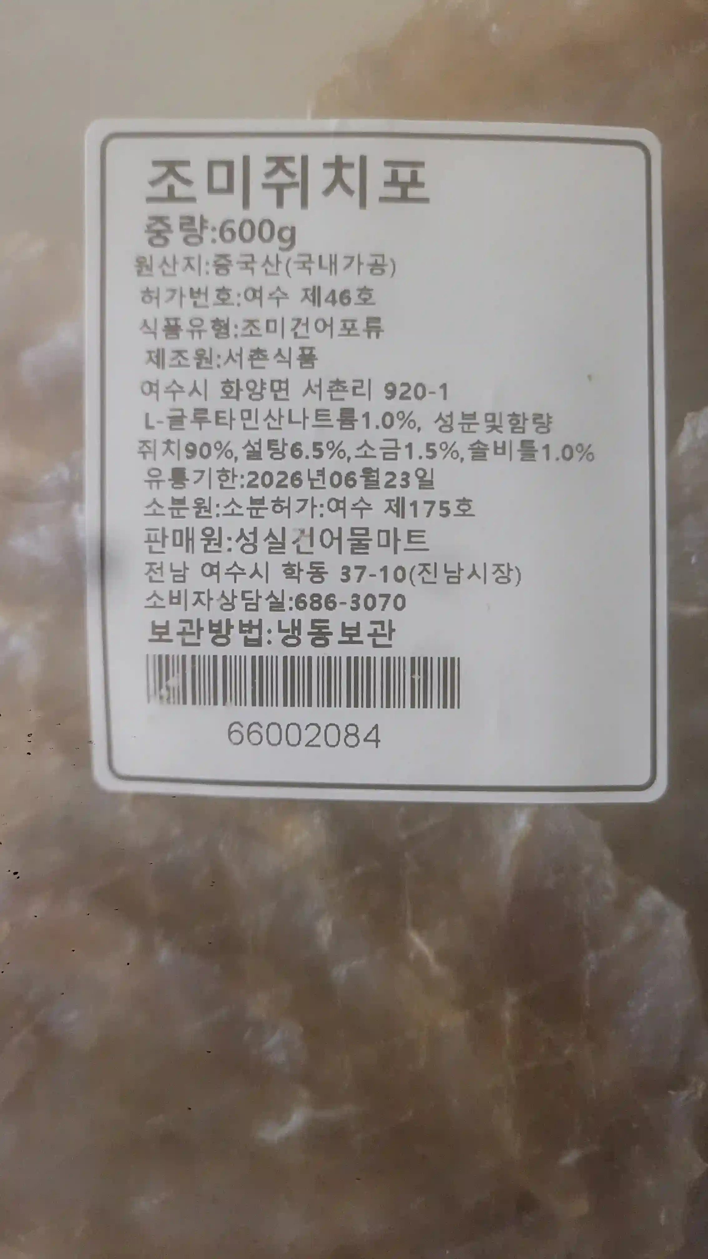 600g 한 봉지에 27000원 짜리 조미쥐치포.