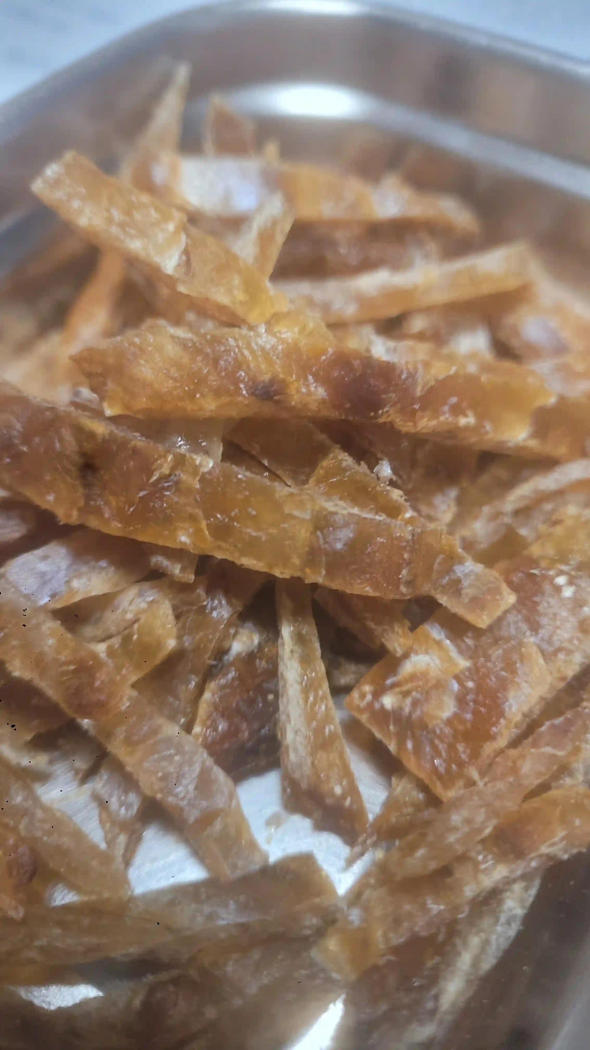 여수성실건어물에 직접 가서 샀는데 비싸졌다고 했더니, 요즘 물건이 잘 나오지도 않는다고 한다. 에어프라이어에 타지 않게 노릇노릇 구워 잘랐다. 역시 두툼하고, 적당한 단맛으로 주전부리나 맥주 안주로 딱 좋다.