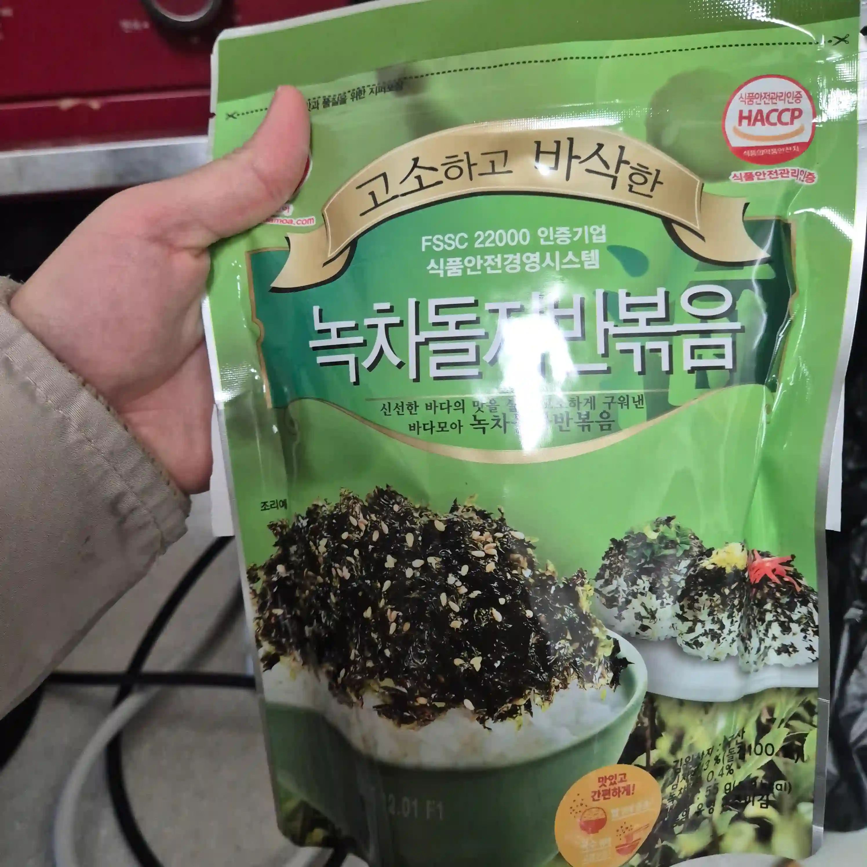 녹차 돌자반입니다 그냥 밥에 놓고 비벼 먹기만 해도 정말 맛있습니다 아이들 주먹밥 만들 때 활용하기 좋을 것 같습니다 재구매 의사 있습니다