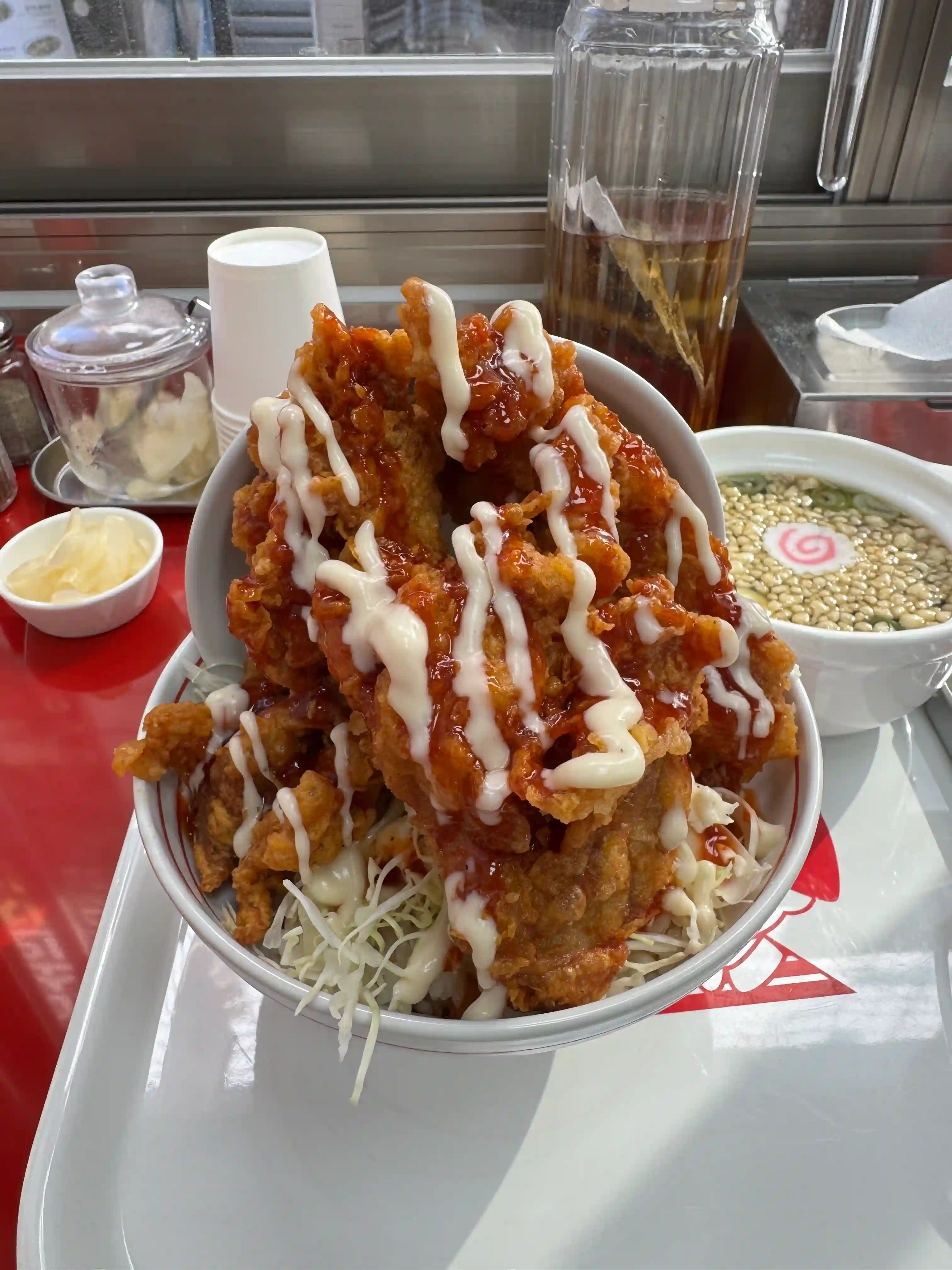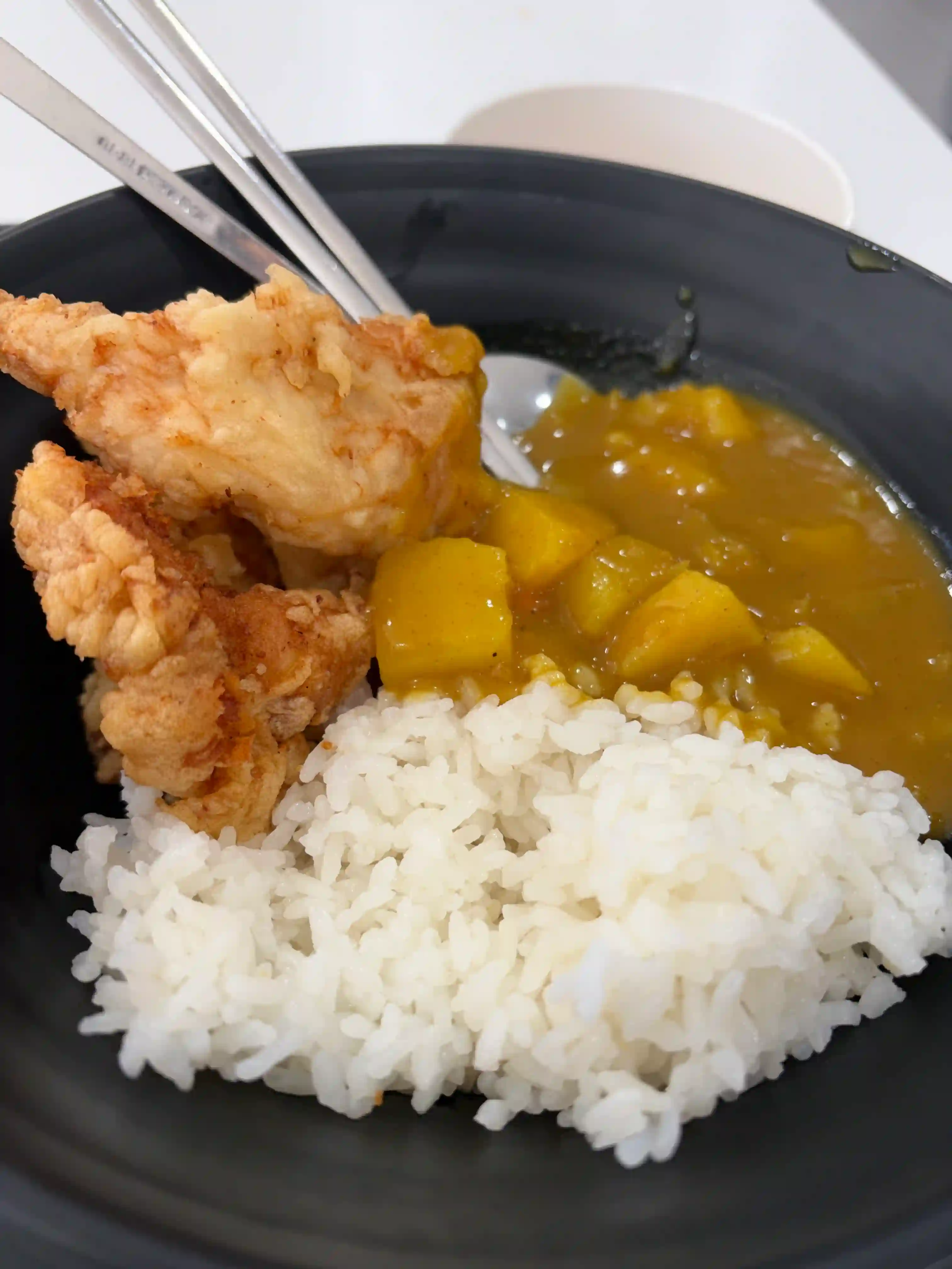 바삭하게 튀킨 치킨위에 달큰한 카레 소스가 넉넉히 얹혀진 치킨덮밥이다. 고슬한 밥과 큼직한 감자가 소스를 머금어 한숟갈마다 고소한과 부드러움이 함께 느껴지고 튀김의 바삭함이 마지막까지 살아있어 든든한 한 그릇으로 완성돤다.
